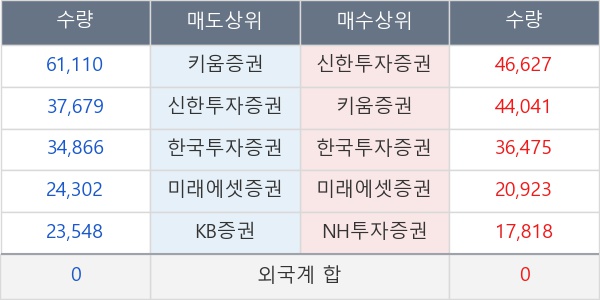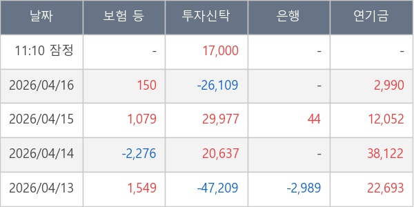 [표] 주요 기관별 순매매량 (단위 주)