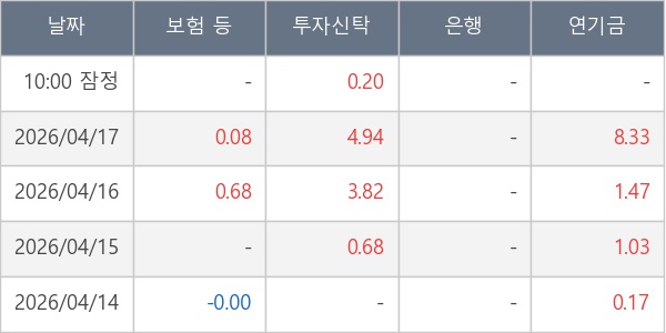 ※ 사모펀드 등 일부 기관의 순매매량은 표시되지 않음
