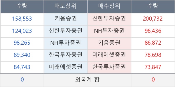 [표] 주요 기관별 순매매량 (단위 만주)