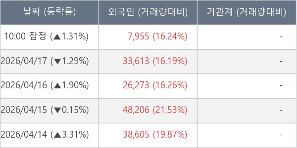 [표] 외국인ㆍ기관 순매매량 (단위 주)