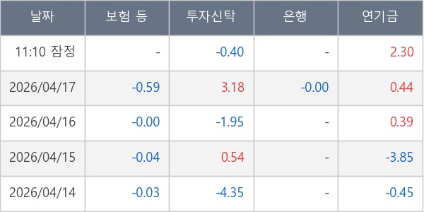 [표] 주요 기관별 순매매량 (단위 만주)