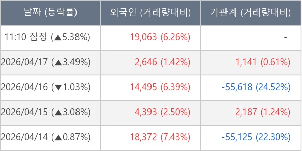 [표] 외국인ㆍ기관 순매매량 (단위 주)
