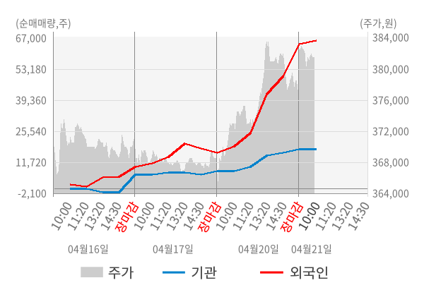 [서울=뉴스핌] 로보뉴스 = 21일 10시 15분 현재 SK(034730)는 전일 대비 1.19% (현재가 381,500원) 상승했고, 외국인이 최근 12일 연속 순매수(누적 26.89만 주, 잠정) 행진을 하고 있다.