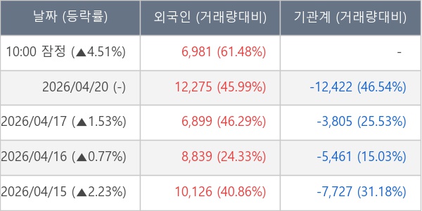 [표] 외국인ㆍ기관 순매매량 (단위 주)