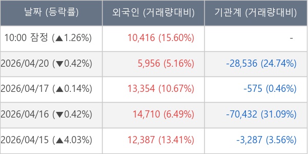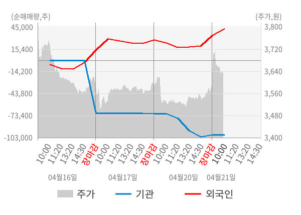 [표] 외국인ㆍ기관 순매매량 (단위 주)
