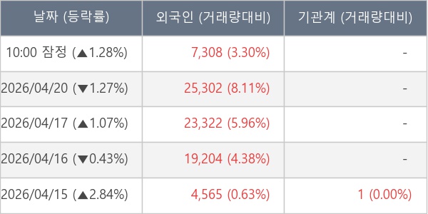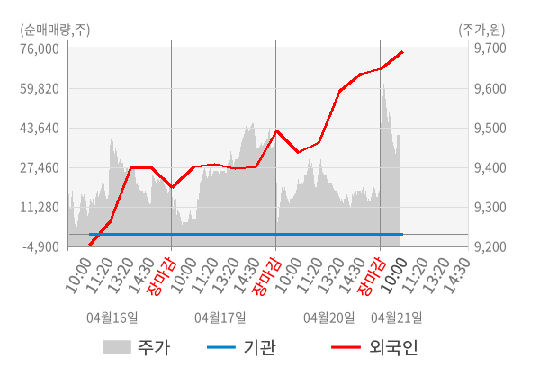 [표] 외국인ㆍ기관 순매매량 (단위 주)