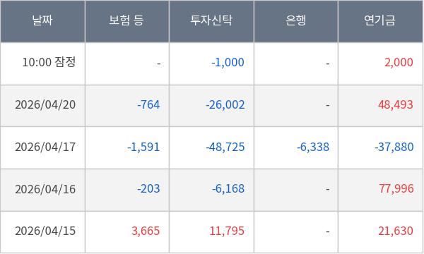 [표] 주요 기관별 순매매량 (단위 만주)