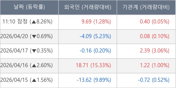 ※ 사모펀드 등 일부 기관의 순매매량은 표시되지 않음