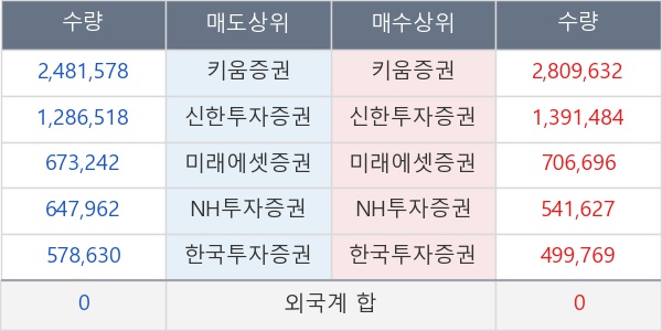 [표] 주요 기관별 순매매량 (단위 만주)