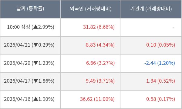 [표] 외국인ㆍ기관 순매매량 (단위 만주)