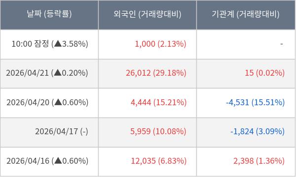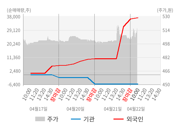 [표] 외국인ㆍ기관 순매매량 (단위 주)