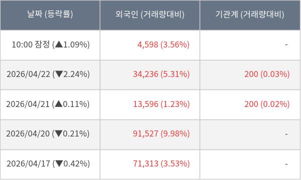[표] 외국인ㆍ기관 순매매량 (단위 주)