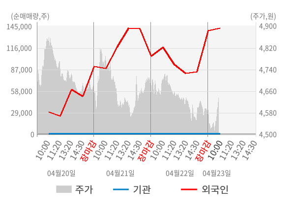 [서울=뉴스핌] 로보뉴스 = 23일 10시 15분 현재 캡스톤파트너스(452300)는 전일 대비 1.09% (현재가 4,630원) 상승했고, 외국인이 최근 6일 연속 순매수(누적 30.61만 주, 잠정) 행진을 하고 있다.