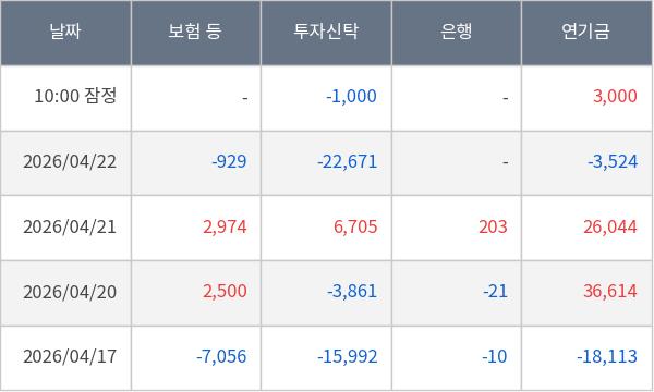 [표] 주요 기관별 순매매량 (단위 주)