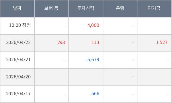 [표] 주요 기관별 순매매량 (단위 주)