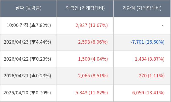 [표] 외국인ㆍ기관 순매매량 (단위 주)