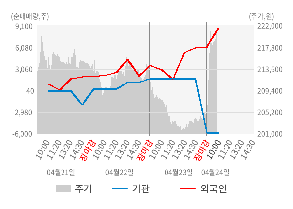 ※ 장중 매매동향은 잠정치이므로 실제 매매동향과 차이가 발생할수 있음