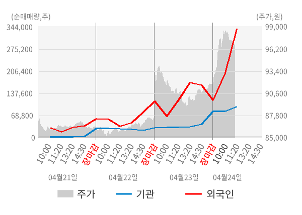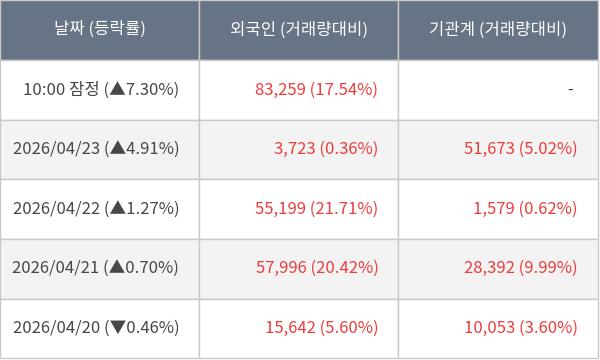 [표] 외국인ㆍ기관 순매매량 (단위 주)