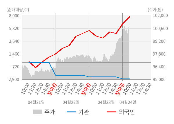 [표] 외국인ㆍ기관 순매매량 (단위 주)