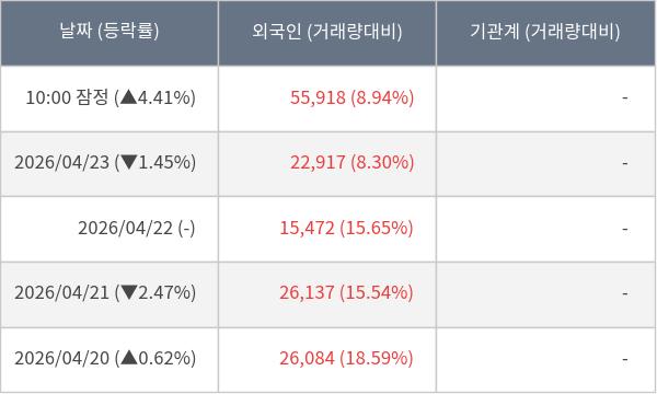 [표] 외국인ㆍ기관 순매매량 (단위 주)