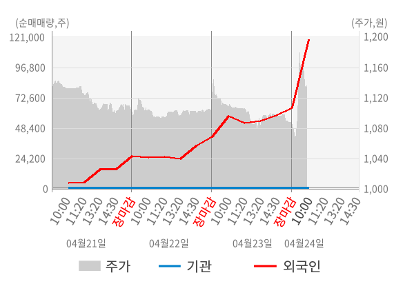 [서울=뉴스핌] 로보뉴스 = 24일 10시 15분 현재 헝셩그룹(900270)은 전일 대비 4.41% (현재가 1,136원) 상승했고, 외국인이 최근 7일 연속 순매수(누적 20.09만 주, 잠정) 행진을 하고 있다.