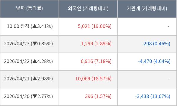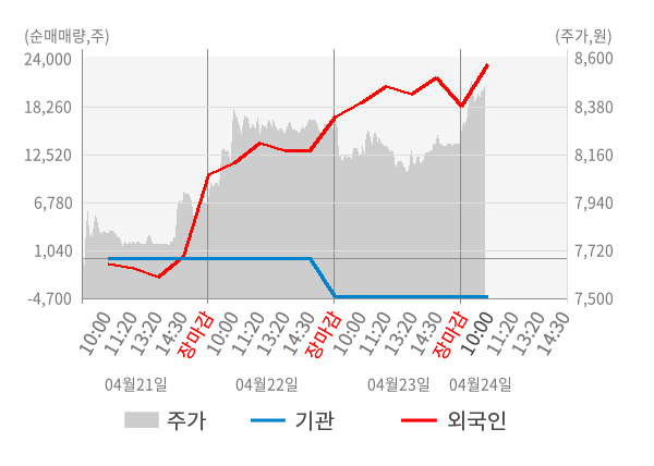 [표] 외국인ㆍ기관 순매매량 (단위 주)
