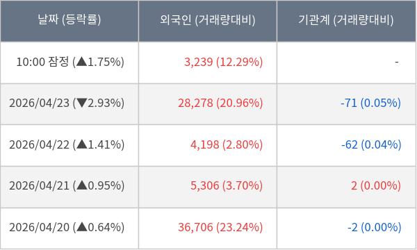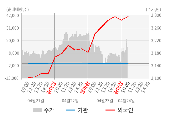 [표] 외국인ㆍ기관 순매매량 (단위 주)