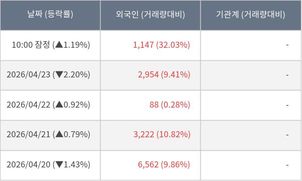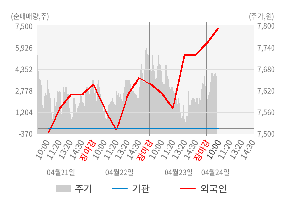 [표] 외국인ㆍ기관 순매매량 (단위 주)