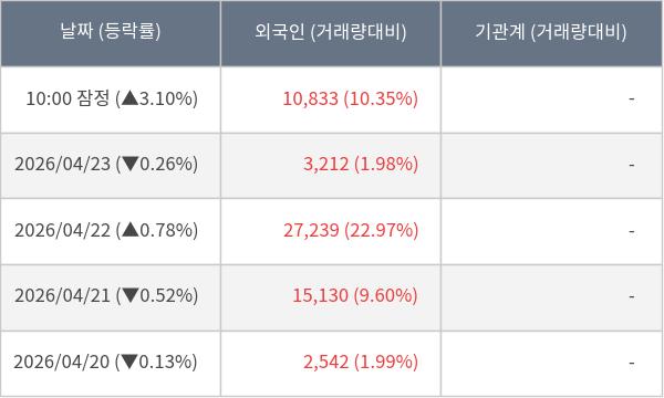 [표] 외국인ㆍ기관 순매매량 (단위 주)