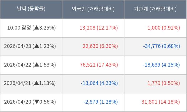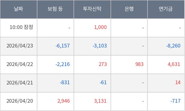 [표] 주요 기관별 순매매량 (단위 주)