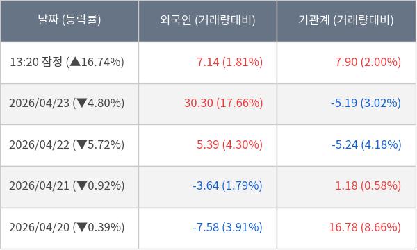 [서울=뉴스핌] 로보뉴스 = 24일 13시 30분 현재 세미파이브(490470)는 외국인과 기관이 각각 7.14 만 주, 7.90 만 주 순매수(잠정) 하면서 전일 대비 16.74% (현재가 39,400원) 상승하고 있다.