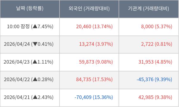 ※ 사모펀드 등 일부 기관의 순매매량은 표시되지 않음