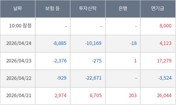 [표] 주요 기관별 순매매량 (단위 주)