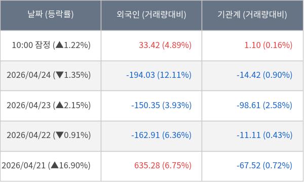 ※ 사모펀드 등 일부 기관의 순매매량은 표시되지 않음