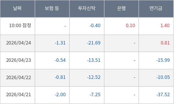 [표] 주요 기관별 순매매량 (단위 만주)