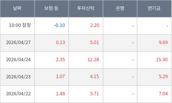 [표] 주요 기관별 순매매량 (단위 만주)