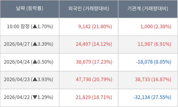 ※ 사모펀드 등 일부 기관의 순매매량은 표시되지 않음