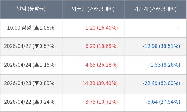 [표] 외국인ㆍ기관 순매매량 (단위 만주)