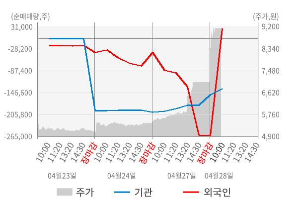[서울=뉴스핌] 로보뉴스 = 28일 10시 15분 현재 포스코스틸리온(058430)은 외국인과 기관이 각각 29.50 만 주, 1.70 만 주 순매수(잠정) 하면서 전일 대비 29.87% (현재가 9,130원) 상승하고 있다.