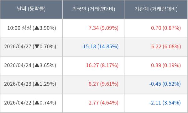 ※ 사모펀드 등 일부 기관의 순매매량은 표시되지 않음