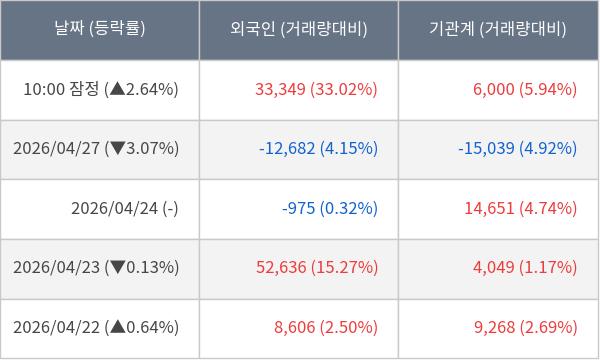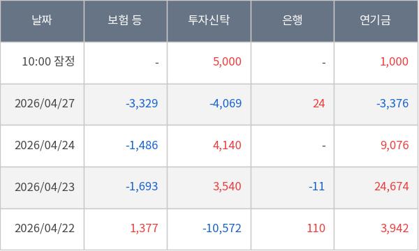 [표] 주요 기관별 순매매량 (단위 주)