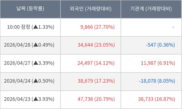 [표] 외국인ㆍ기관 순매매량 (단위 주)