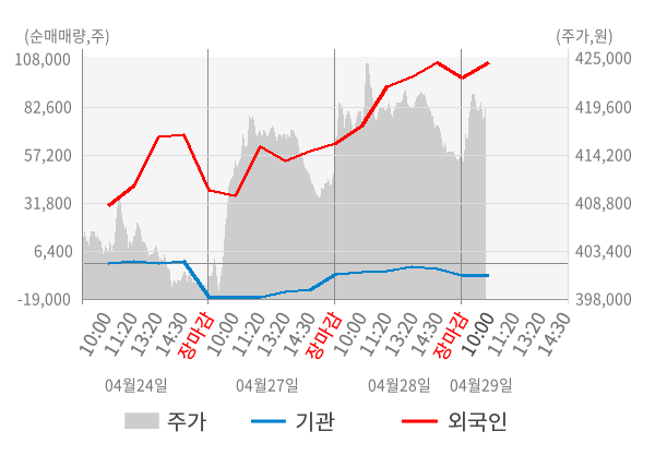 [서울=뉴스핌] 로보뉴스 = 29일 10시 15분 현재 SK(034730)는 전일 대비 1.33% (현재가 419,500원) 상승했고, 외국인이 최근 18일 연속 순매수(누적 47.60만 주, 잠정) 행진을 하고 있다.