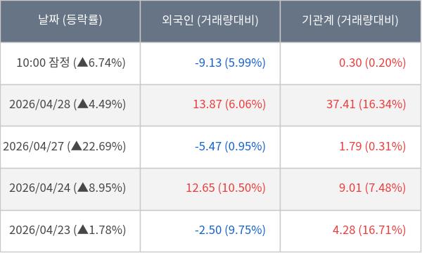[서울=뉴스핌] 로보뉴스 = 29일 10시 15분 현재 동국제강(460860)은 전일 대비 6.74% (현재가 16,160원) 상승했고, 기관이 최근 11일 연속 순매수(누적 69.91만 주, 잠정) 행진을 하고 있다.