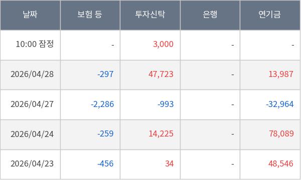 [표] 주요 기관별 순매매량 (단위 주)