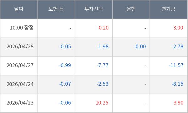 [표] 주요 기관별 순매매량 (단위 만주)