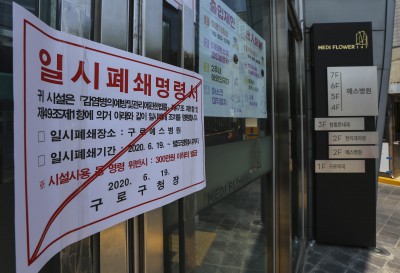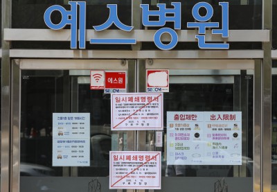 코로나19 확진자 발생으로 일시폐쇄명령서 부착된 예스병원