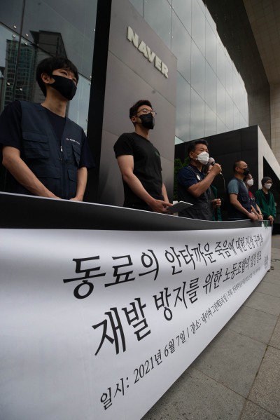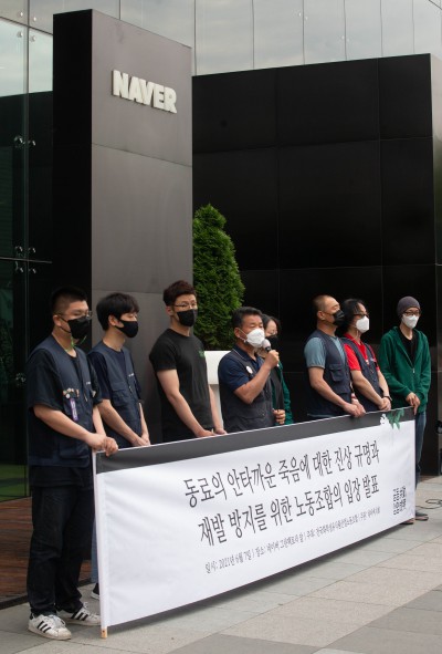 '동료 죽음 재발방지를 위한 네이버노조 입장발표 기자회견'