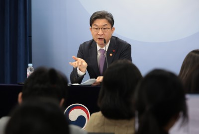 금융위 출입기자단 월례 간담회, 발언하는 이억원 위원장