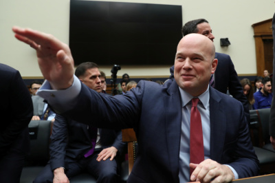 [사진] 매티스 美 국방장관과 악수하는 휘터커 법무장관 대행